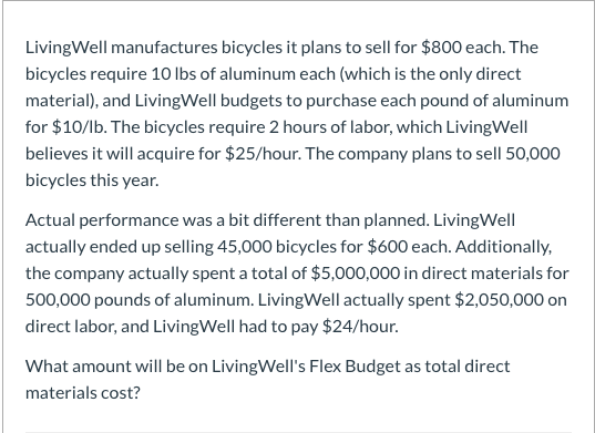 Solved LivingWell manufactures bicycles it plans to sell for Chegg com