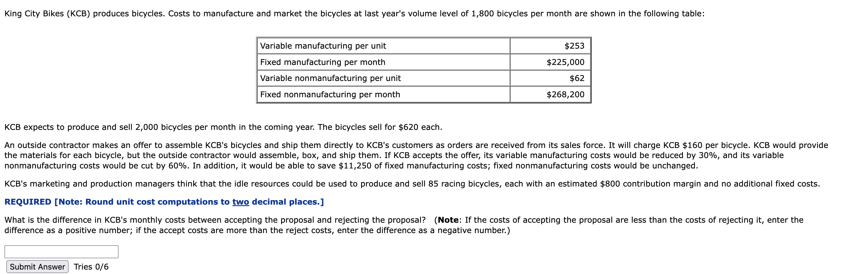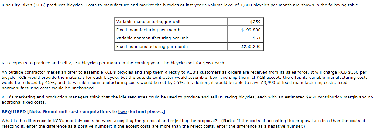 Solved KCB expects to produce and sell 2 150 bicycles per Chegg com