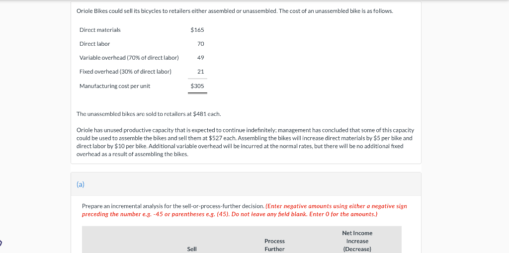 Solved Oriole Bikes could sell its bicycles to retailers Chegg com