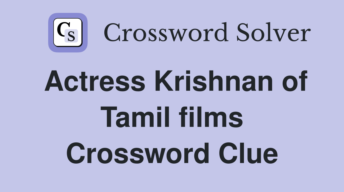 Actress Krishnan of Tamil films Crossword Clue Answers Crossword Solver