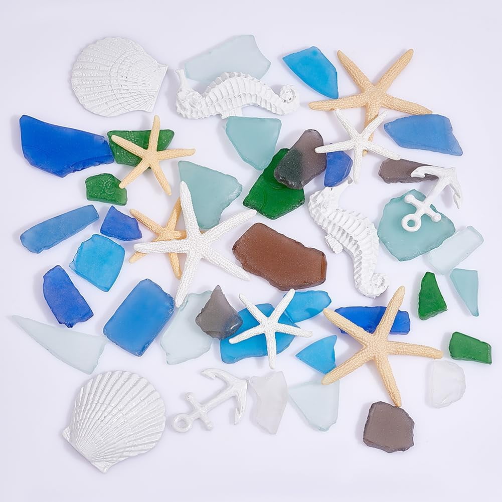 SUNNYCLUE Sea Shells Decorations with Sea Glass for Crafts 8 Styles