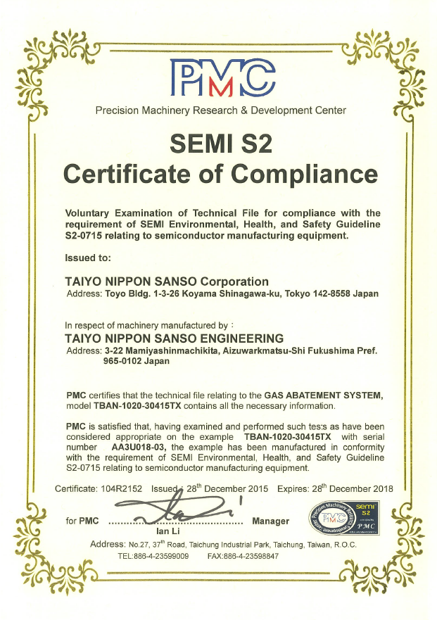 黄盼 (Frank Huang) on LinkedIn: TUV SEMI S2 Certification Approval
