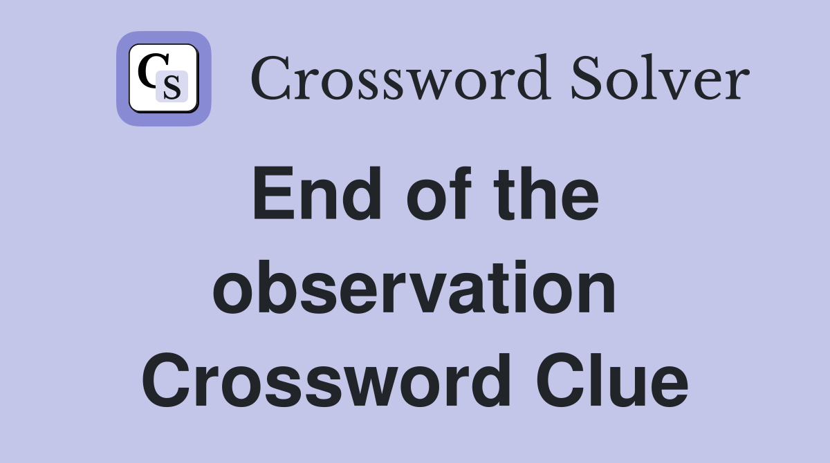 End of the observation Crossword Clue Answers Crossword Solver
