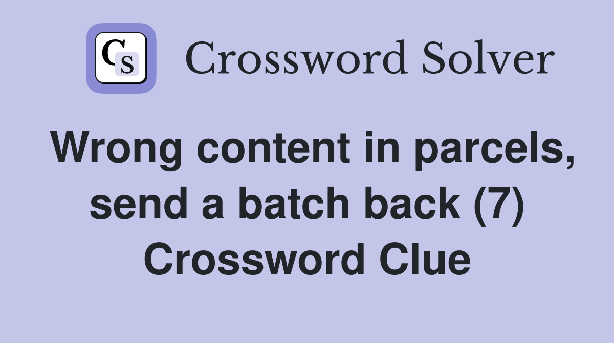 Wrong content in parcels send a batch back (7) Crossword Clue