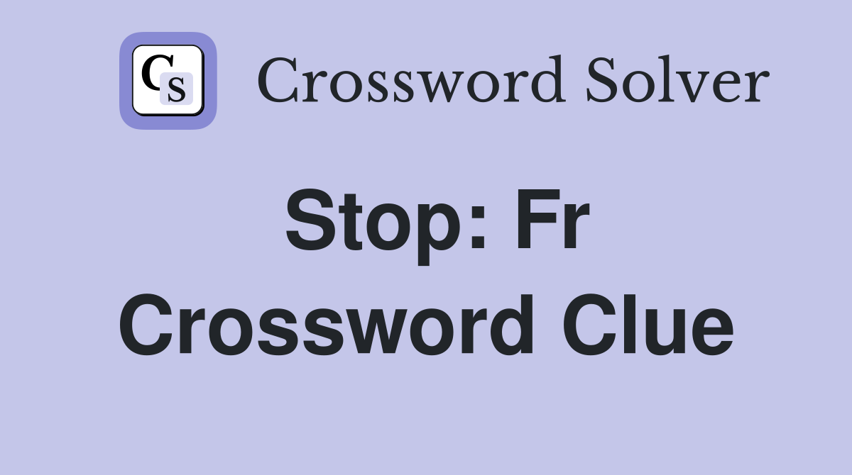 Stop: Fr Crossword Clue Answers Crossword Solver