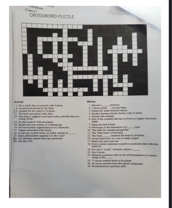 Ushons Canvas CROSSWORD PUZZLE 盛 WT Across 1 For a Chegg com