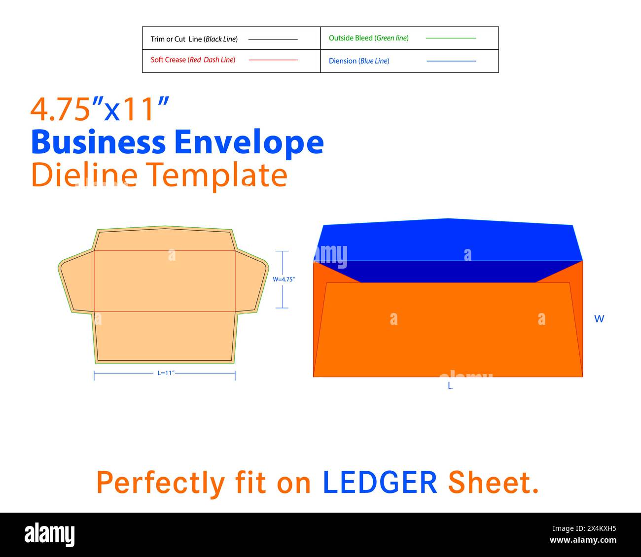 Business Envelope W 4 75 L 11 Inches Die line Template Overall a