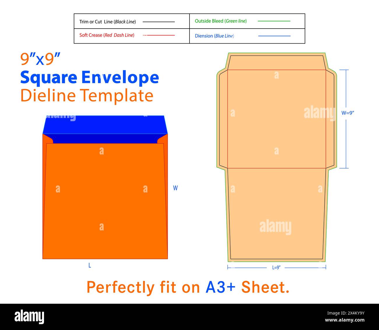 Square Envelope W 9 L 9 Inches Dieline Template Catalogue envelopes