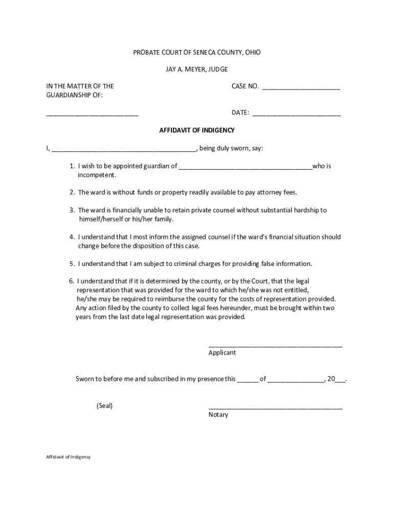 Fillable Online PROBATE COURT OF SENECA COUNTY OHIO JAY A MEYER