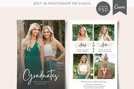 Twin Senior Graduation Card template for Photoshop and Canva SLM55