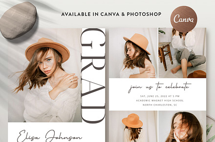 Senior Graduation Card Blush Templates Easy to Use Photoshop Templates