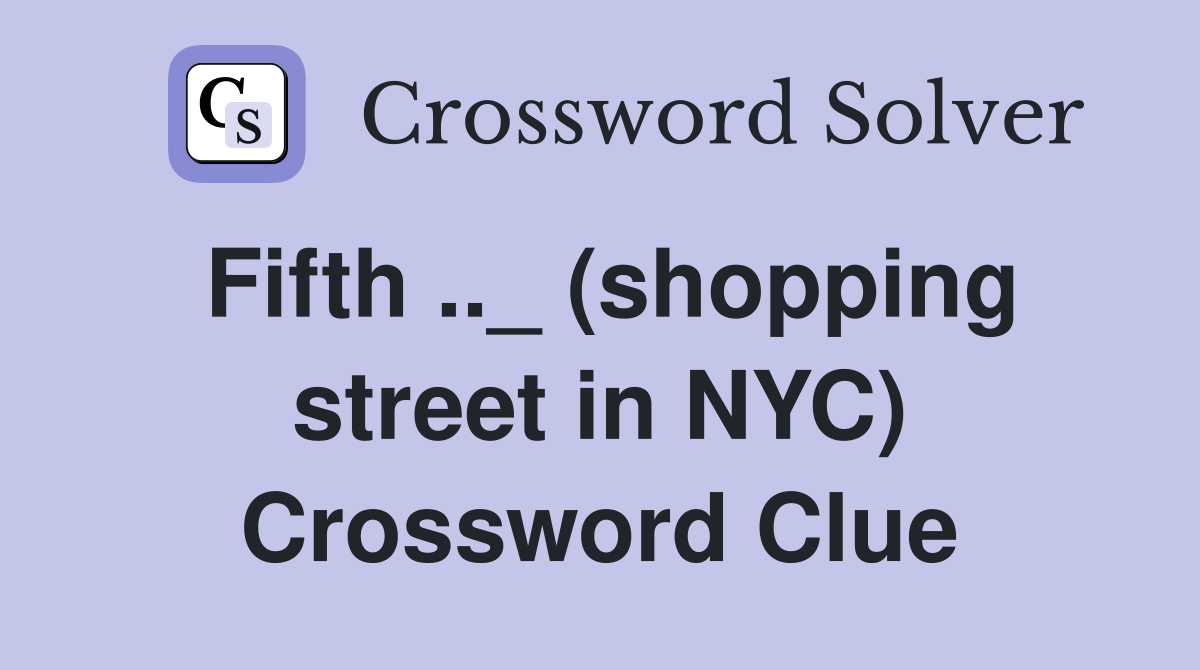 Fifth (shopping street in NYC) Crossword Clue Answers Crossword