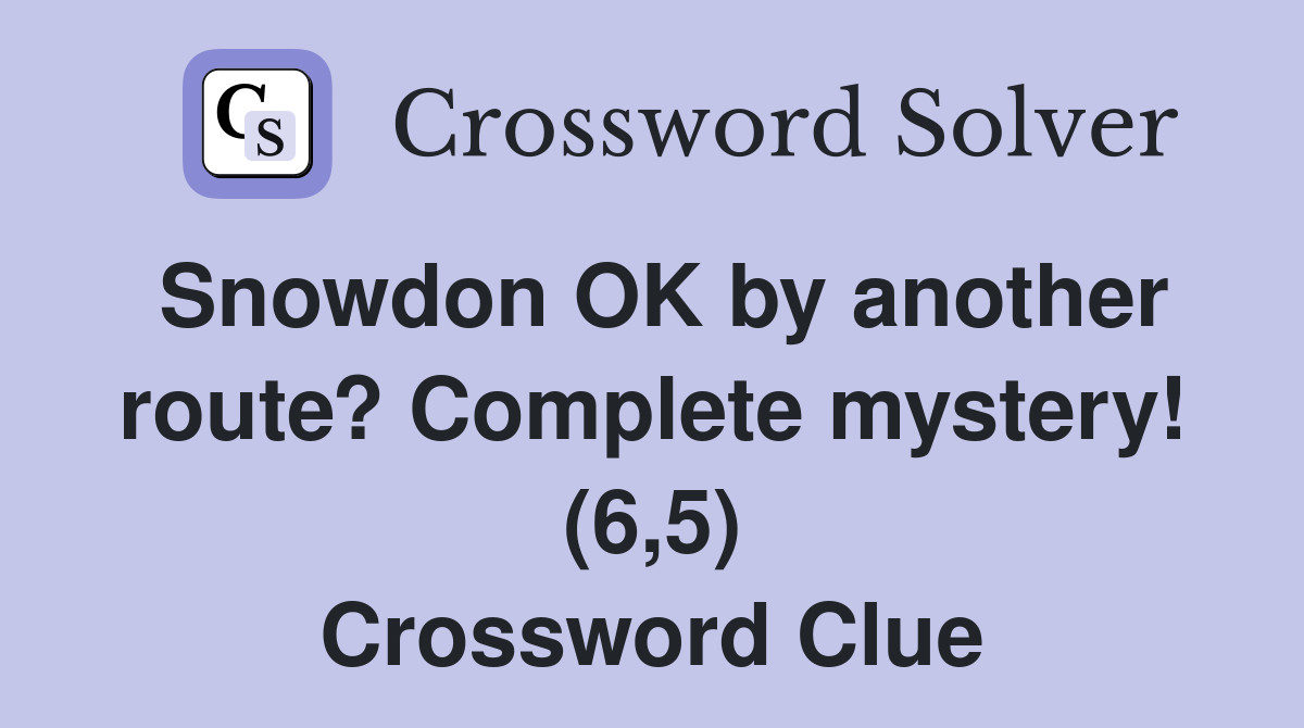 Snowdon OK by another route? Complete mystery (6 5) Crossword Clue