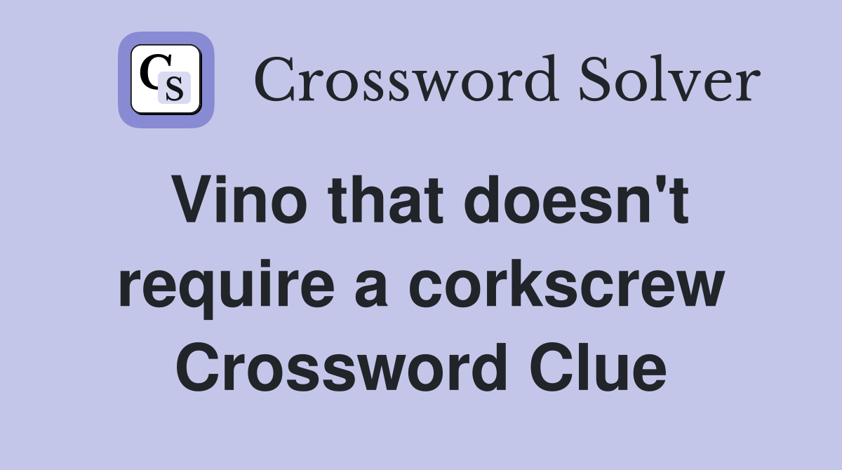 Vino that doesn #39 t require a corkscrew Crossword Clue Answers