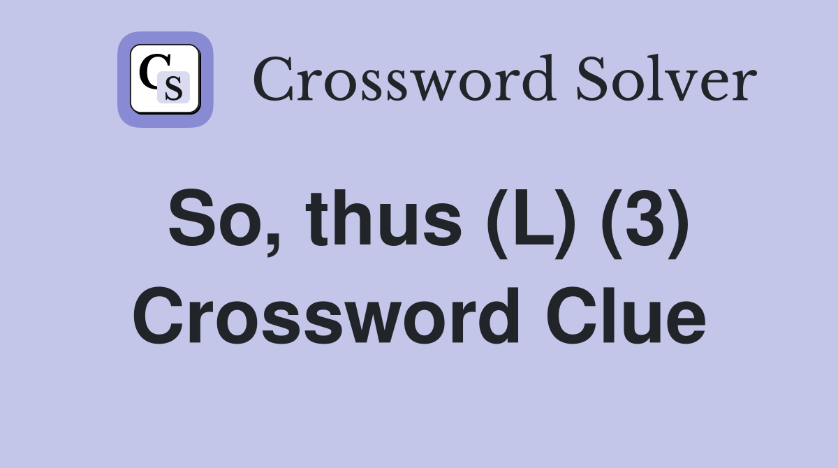 So thus (L) (3) Crossword Clue Answers Crossword Solver