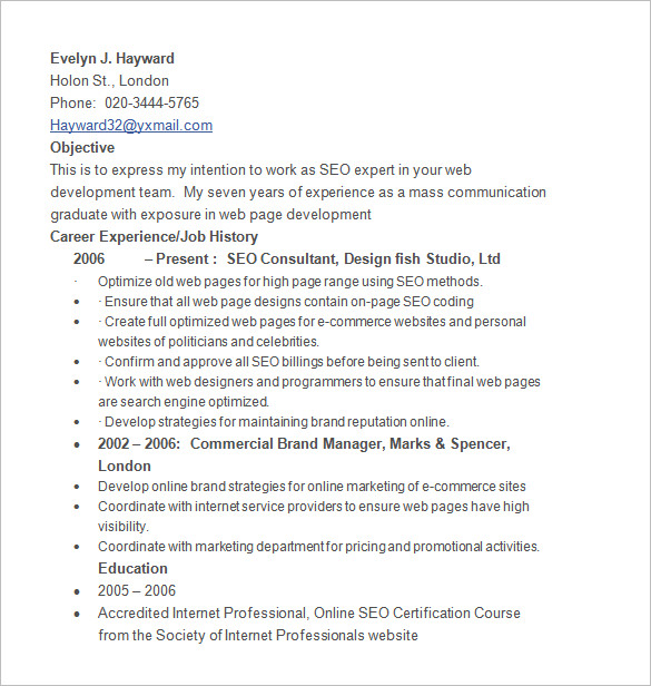 11 SEO Resume Templates DOC PDF