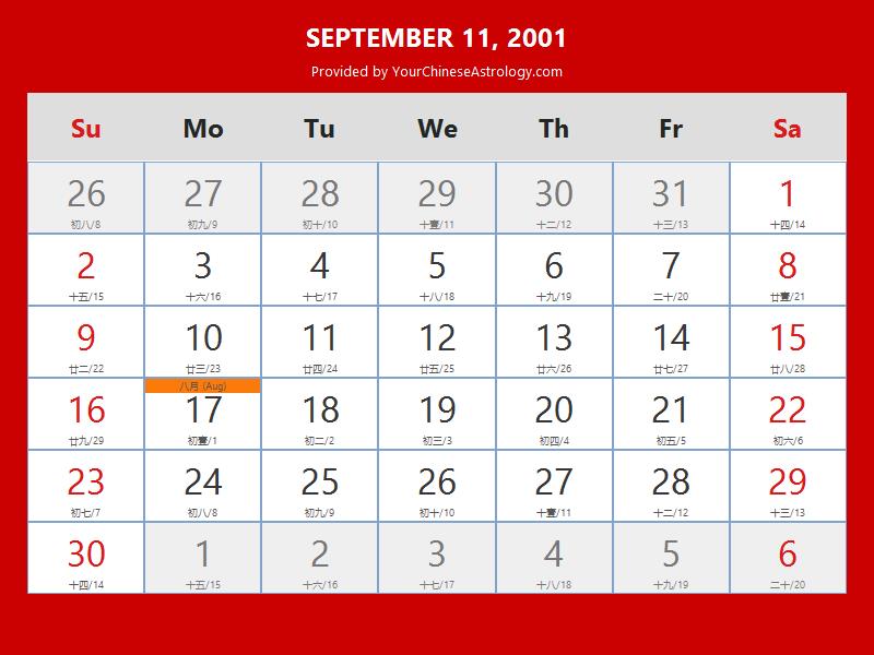 Chinese Calendar Sep 11 2001: Auspicious Things to Do and Hours Bazi