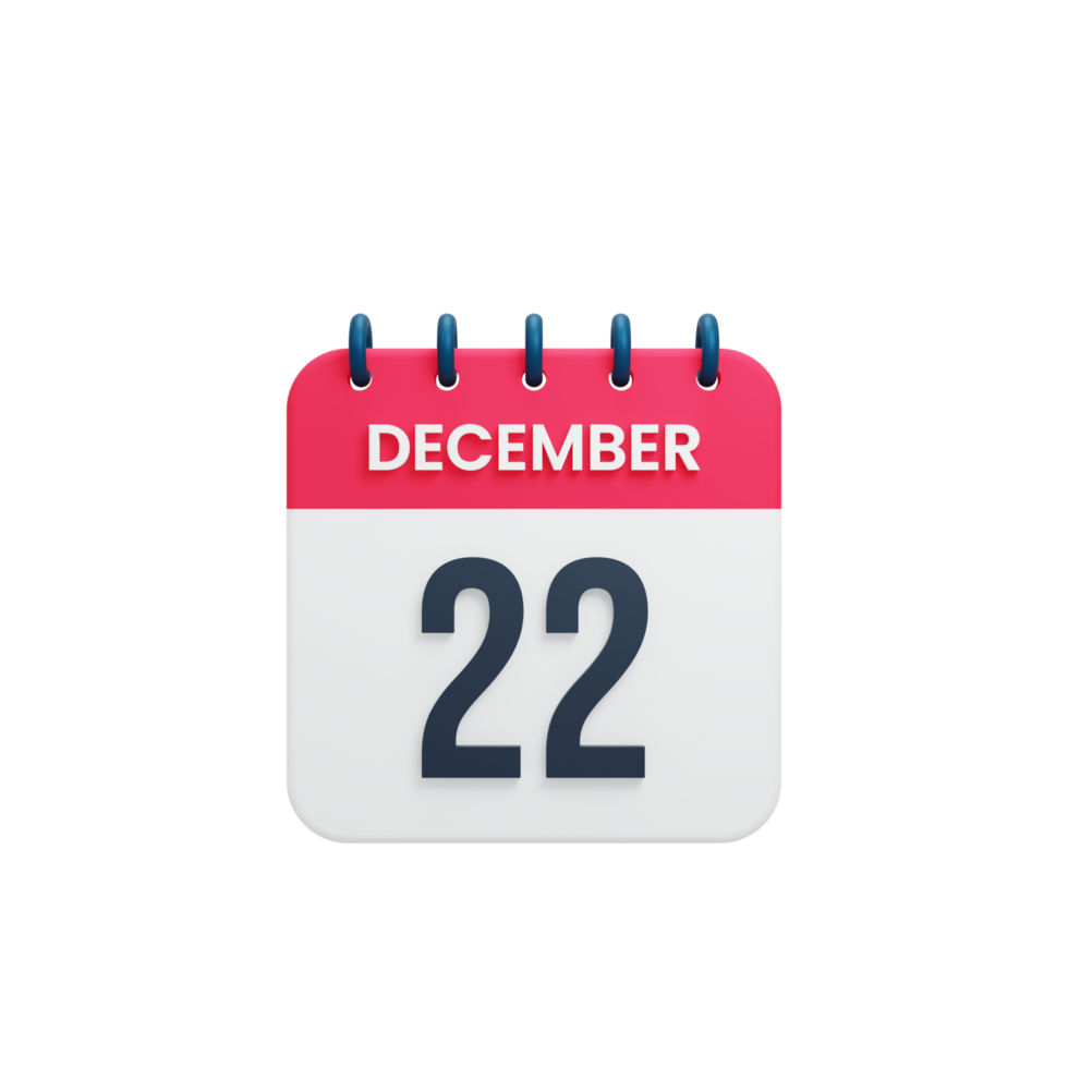 December Realistic Calendar Icon 3D Rendered Date December 22 12424176 PNG