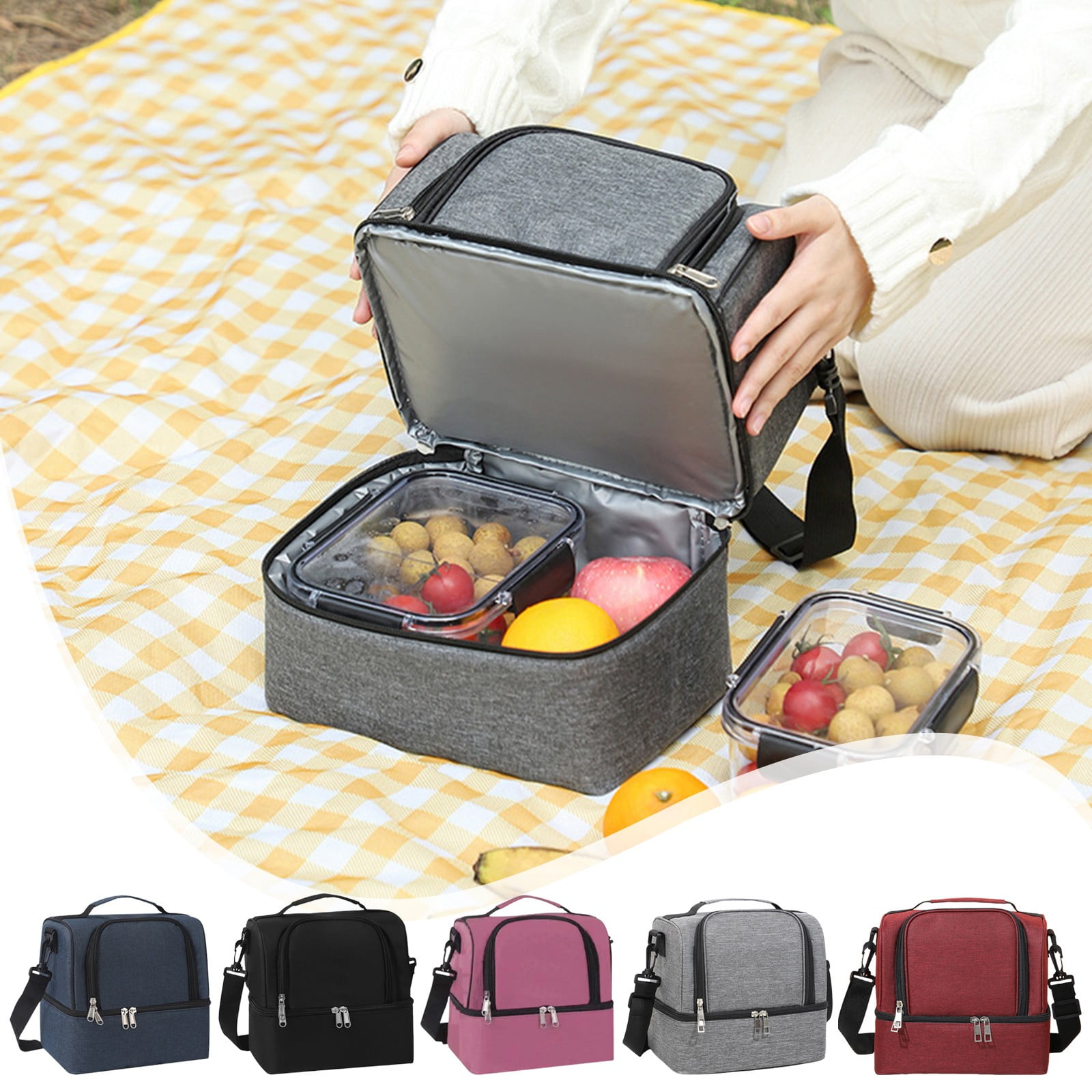 Insulating Food Carrier Waterproof Dual Layer Lunch Bag Leakproof