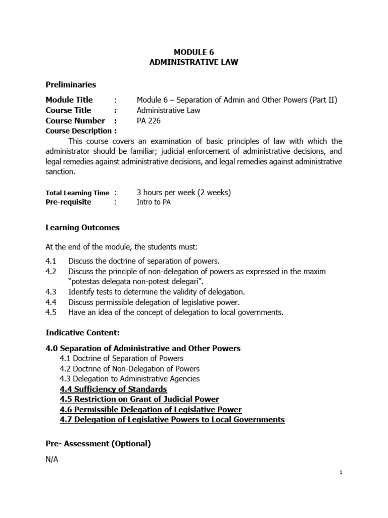 Module 6 Separation of Administrative and Other Powers Part II 2025