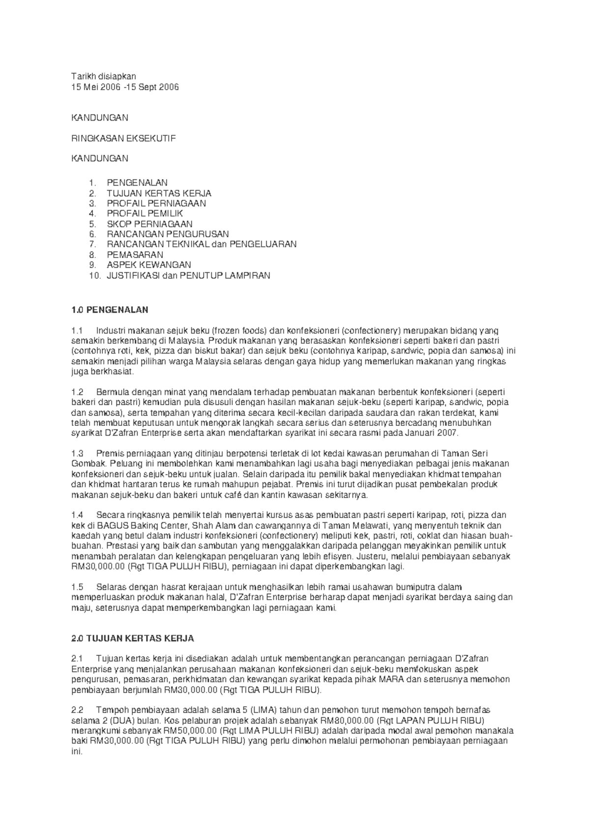 Contoh kertas kerja assigment Tarikh disiapkan 15 Mei 2006 15