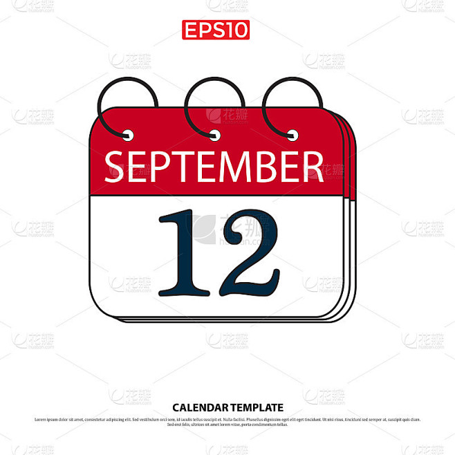 September 12 Calendar icon Vector illustration fla素材 花瓣网