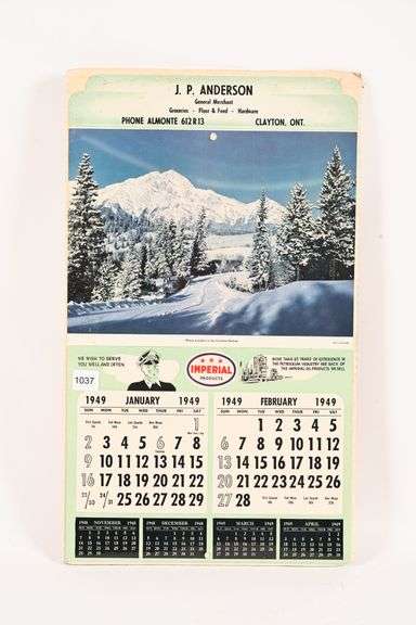 IMPERIAL 3 STAR 1949 CALENDAR Shackelton Auctions Inc