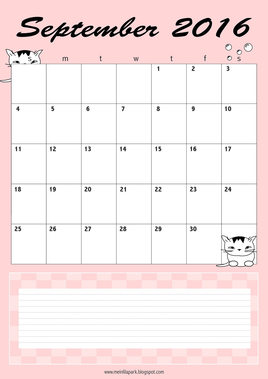 Free printable september 2016 calendar planner freebie MeinLilaPark