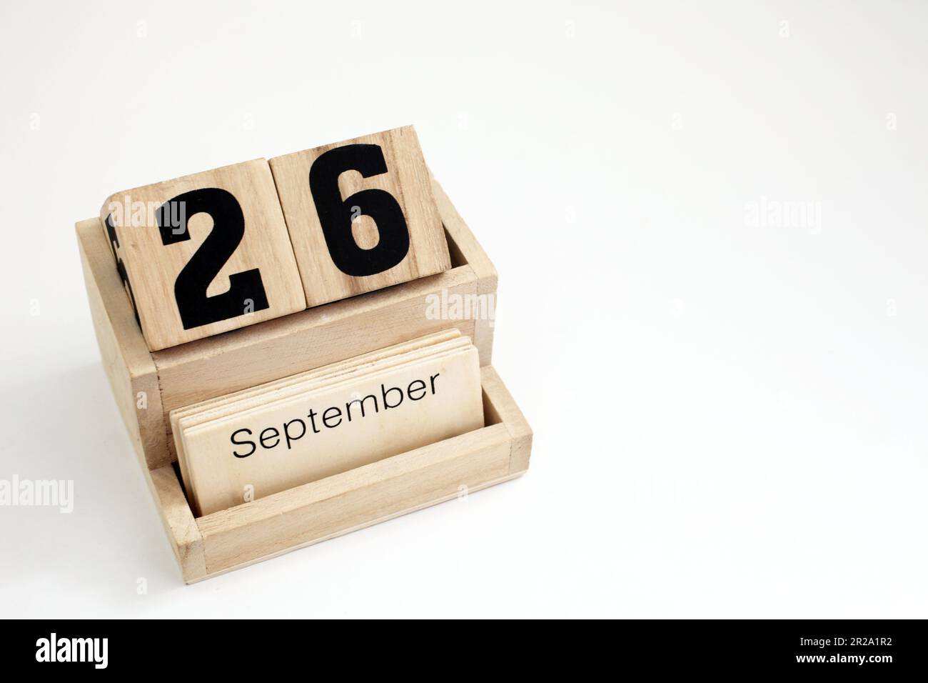 September 26th Day 26 of Month Handmade Wood Calendar Isolated on