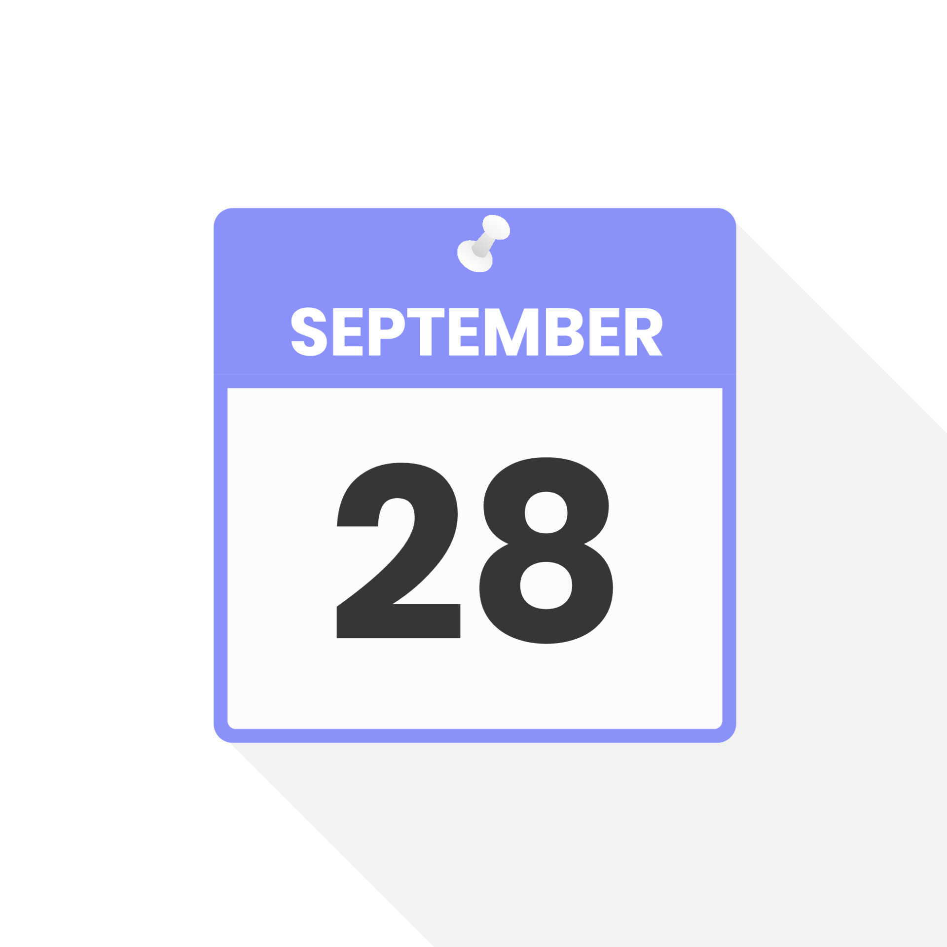 September 28 Calendar Icon with Shadow Day Month Flat Vector