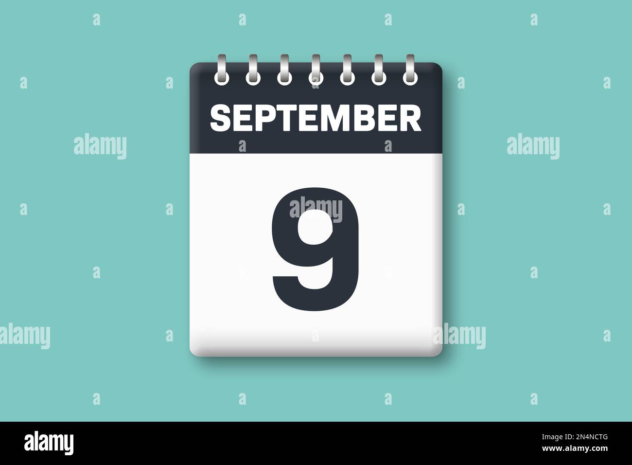 9 September Vector Icon Calendar Day 9 Date of September Ninth Day of