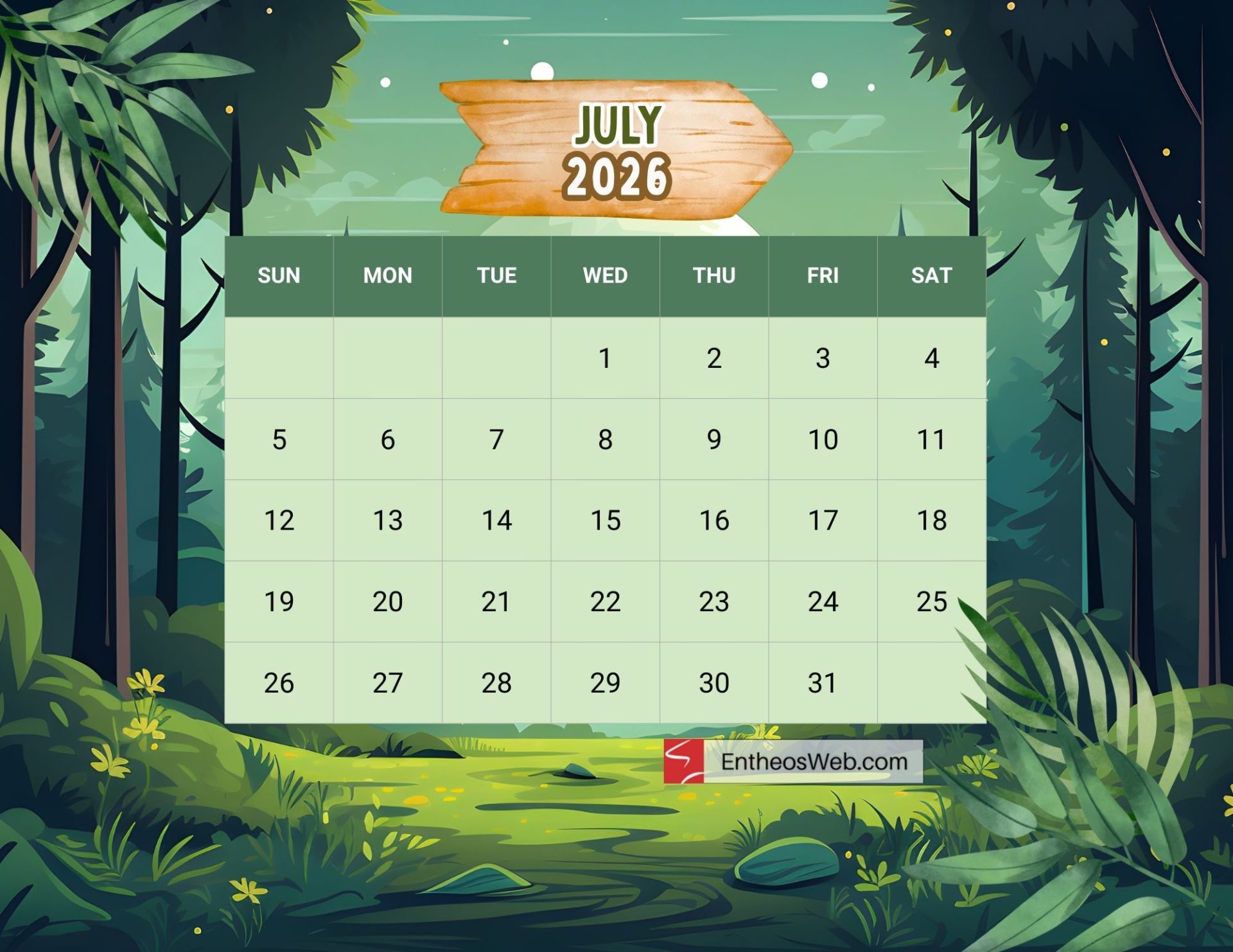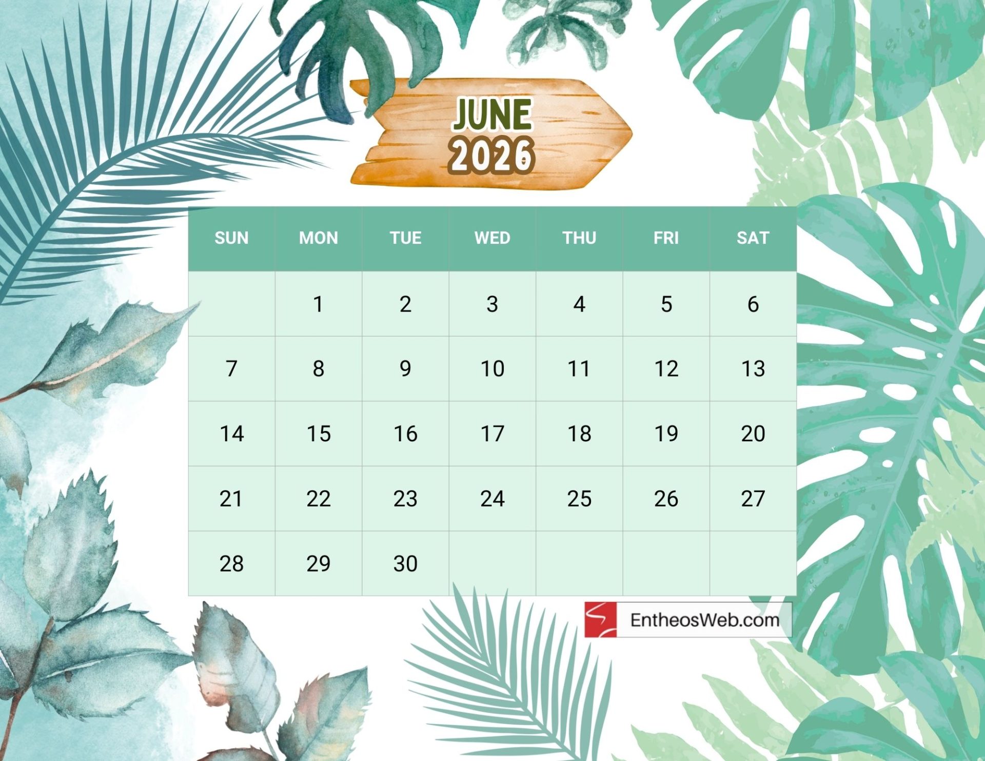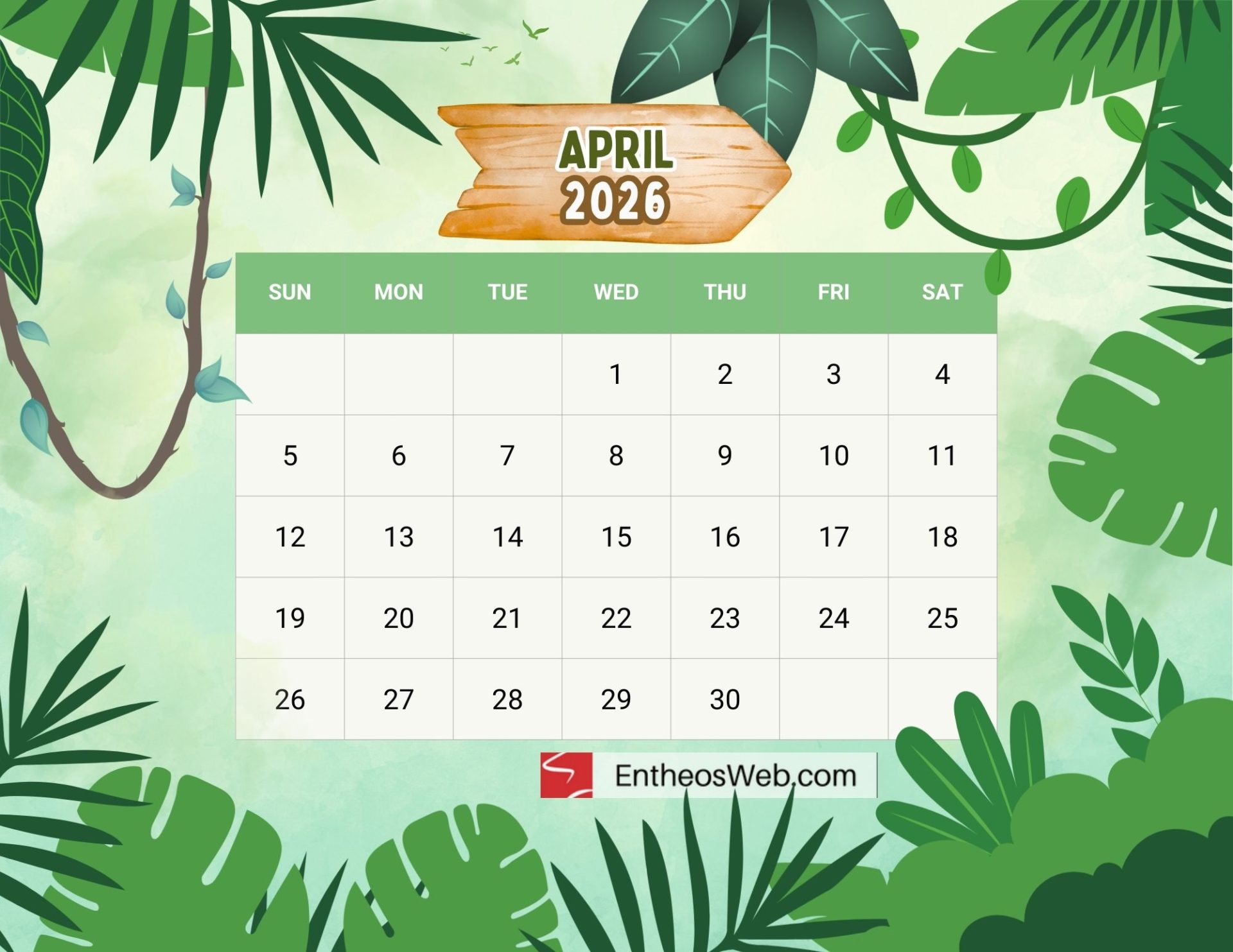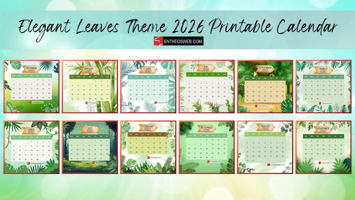 Elegant Leaves Theme 2026 Printable Calendar EntheosWeb