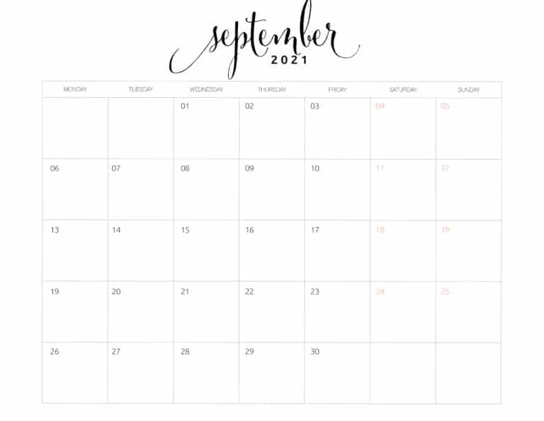 Free Printable September Calendar 8 Different 2021 Calendar PDFs
