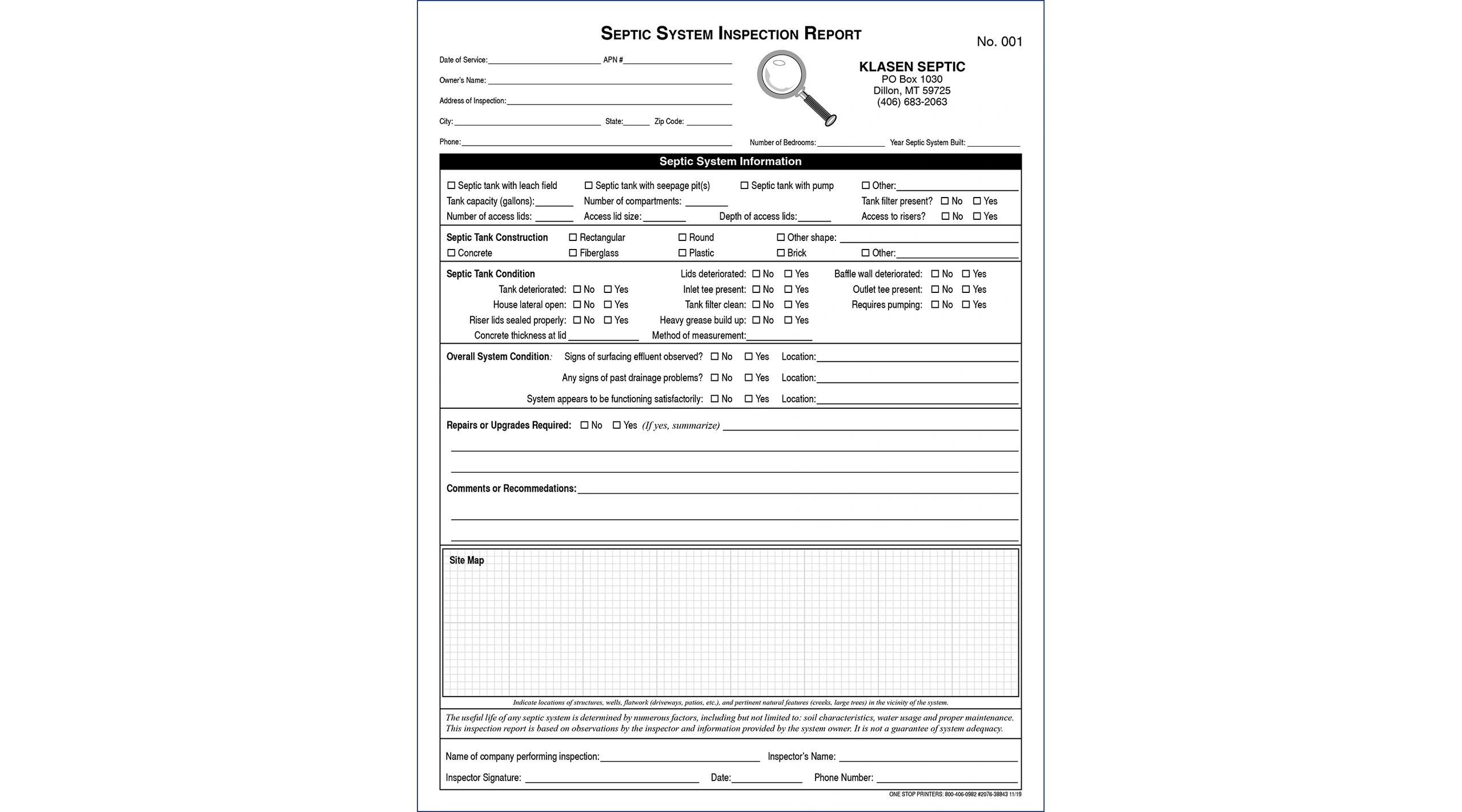 Septic Inspection Report Template