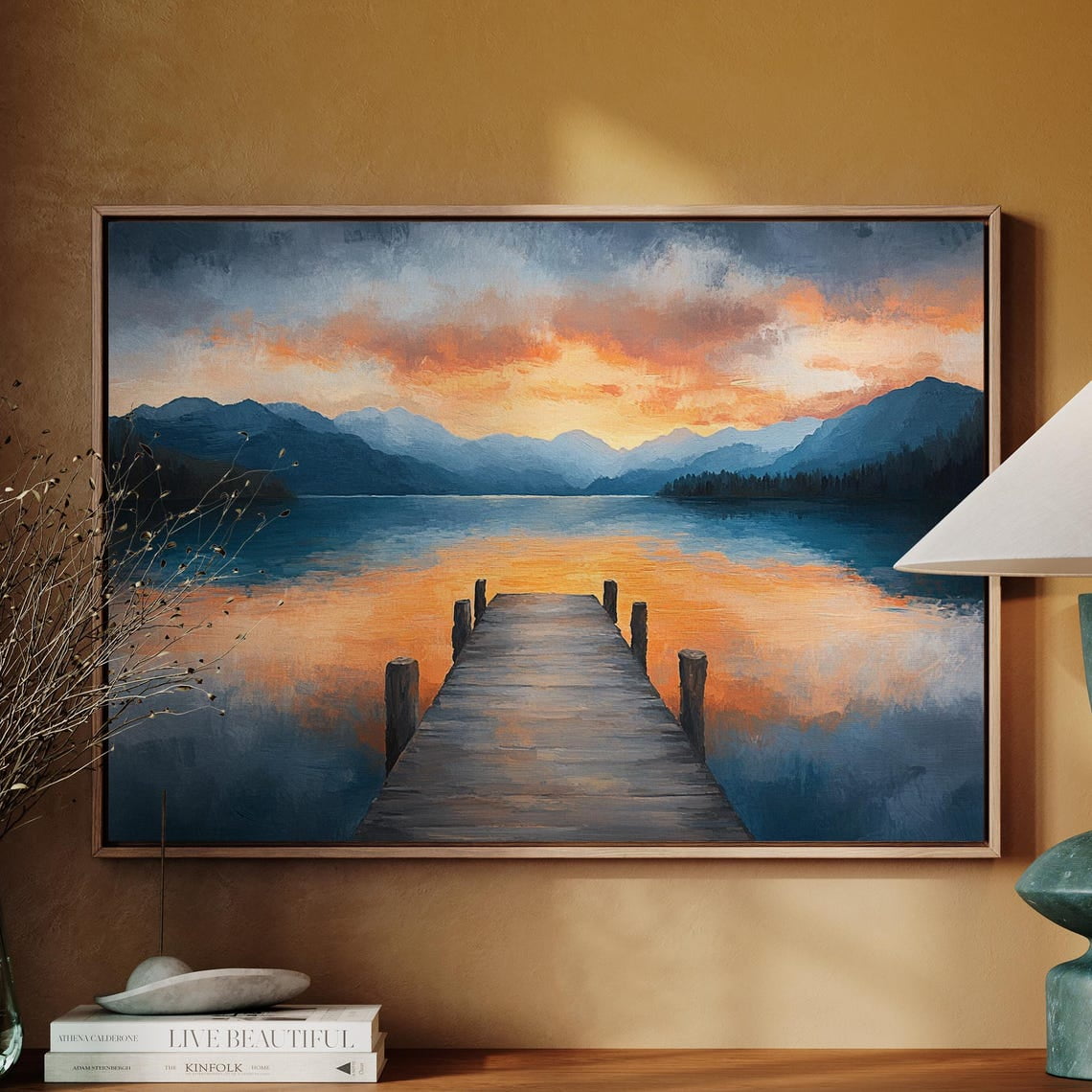 DOPAPRINT Serene Lakeside Sunset With Mountain Reflections Wall Art