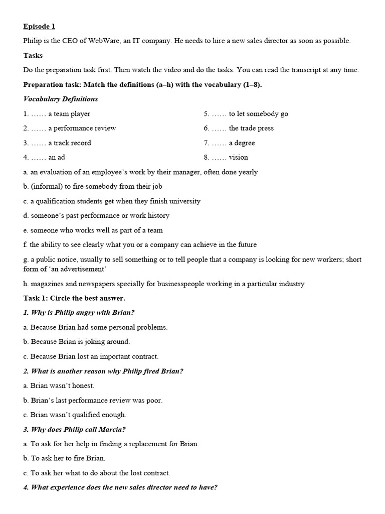 Episode 1 worksheet PDF