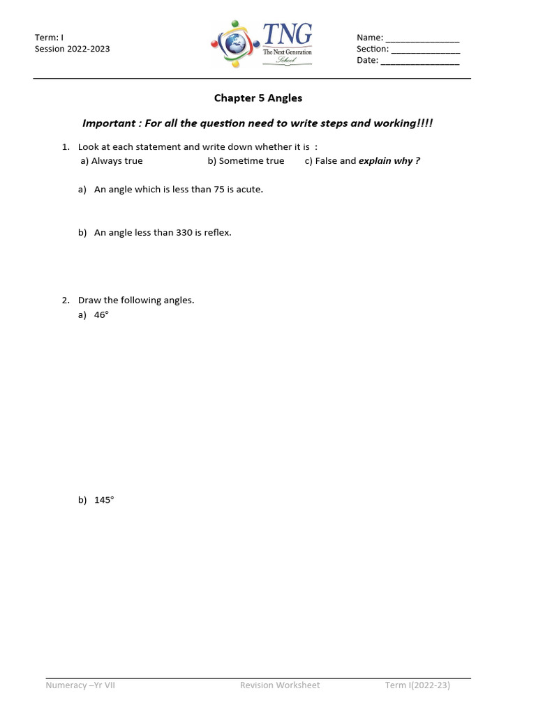 Revision Worksheet Chapter 5 PDF Euclid Elementary Mathematics