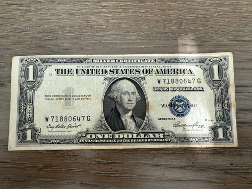 1935E Series Silver Certificate W71880647G One Dollar Bill w/Blue Seal