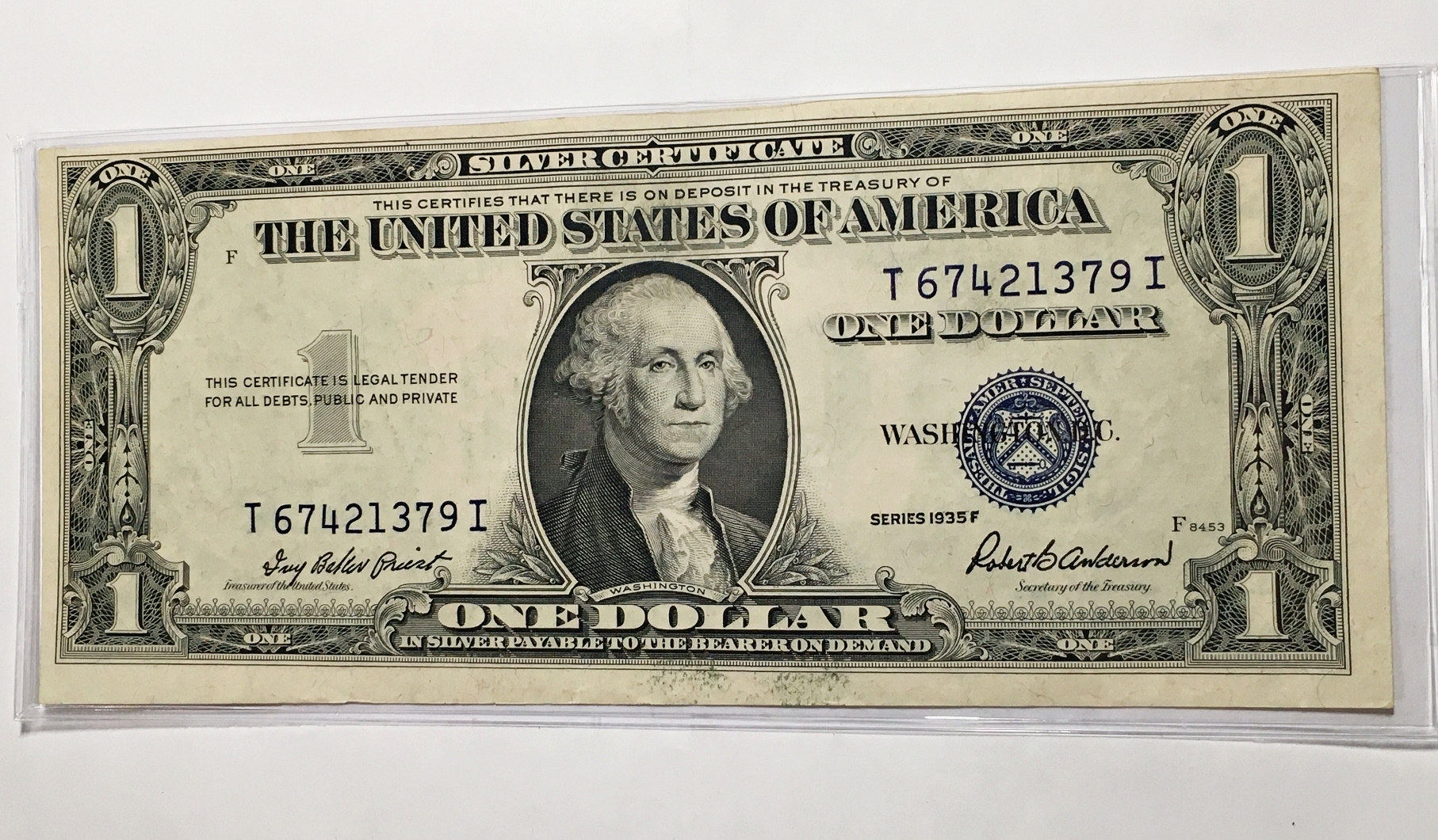 *1935F Series US Blue Seal One Dollar Silver Certificate Banknote