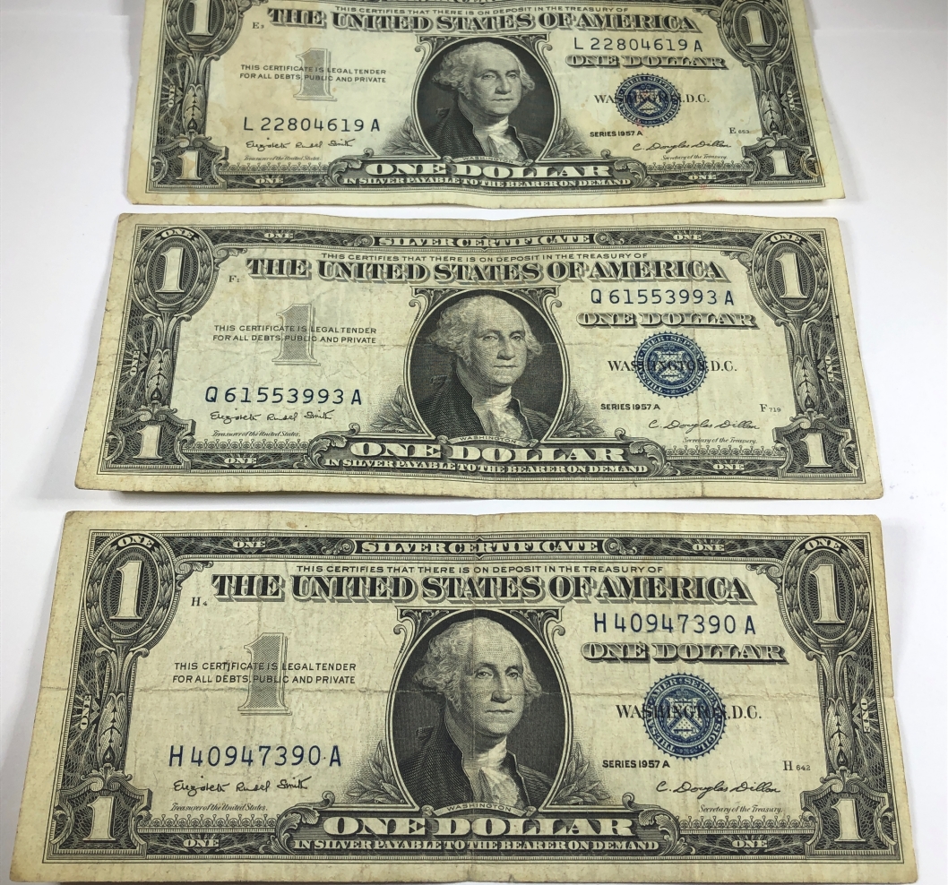 7 SERIES 1957A $1 SILVER CERTIFICATE NOTES