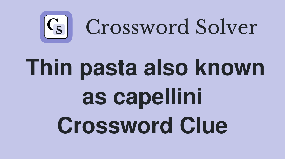 Thin pasta also known as capellini Crossword Clue Answers Crossword