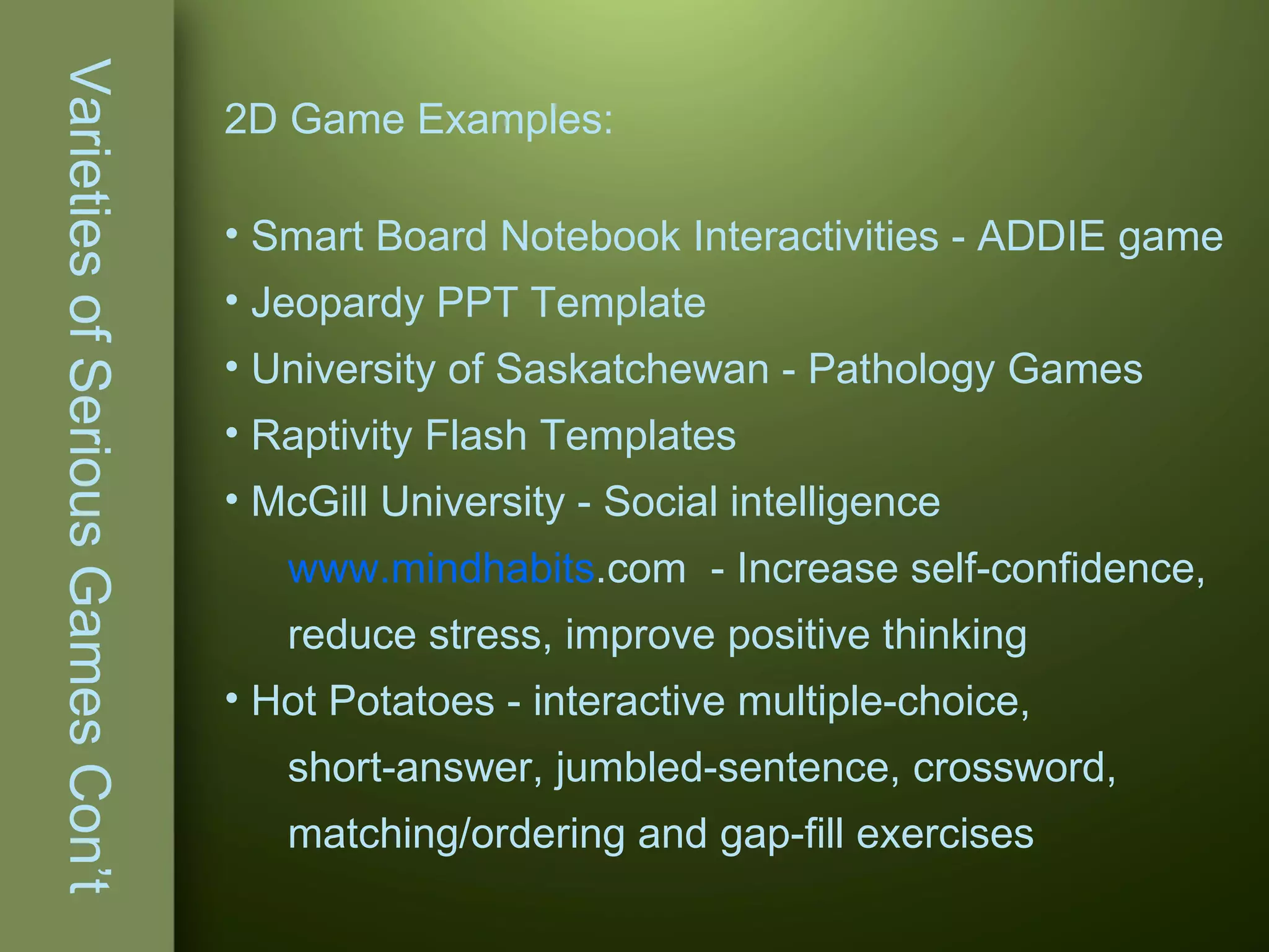 Serious Games PPT Video Game Genres Video Gaming
