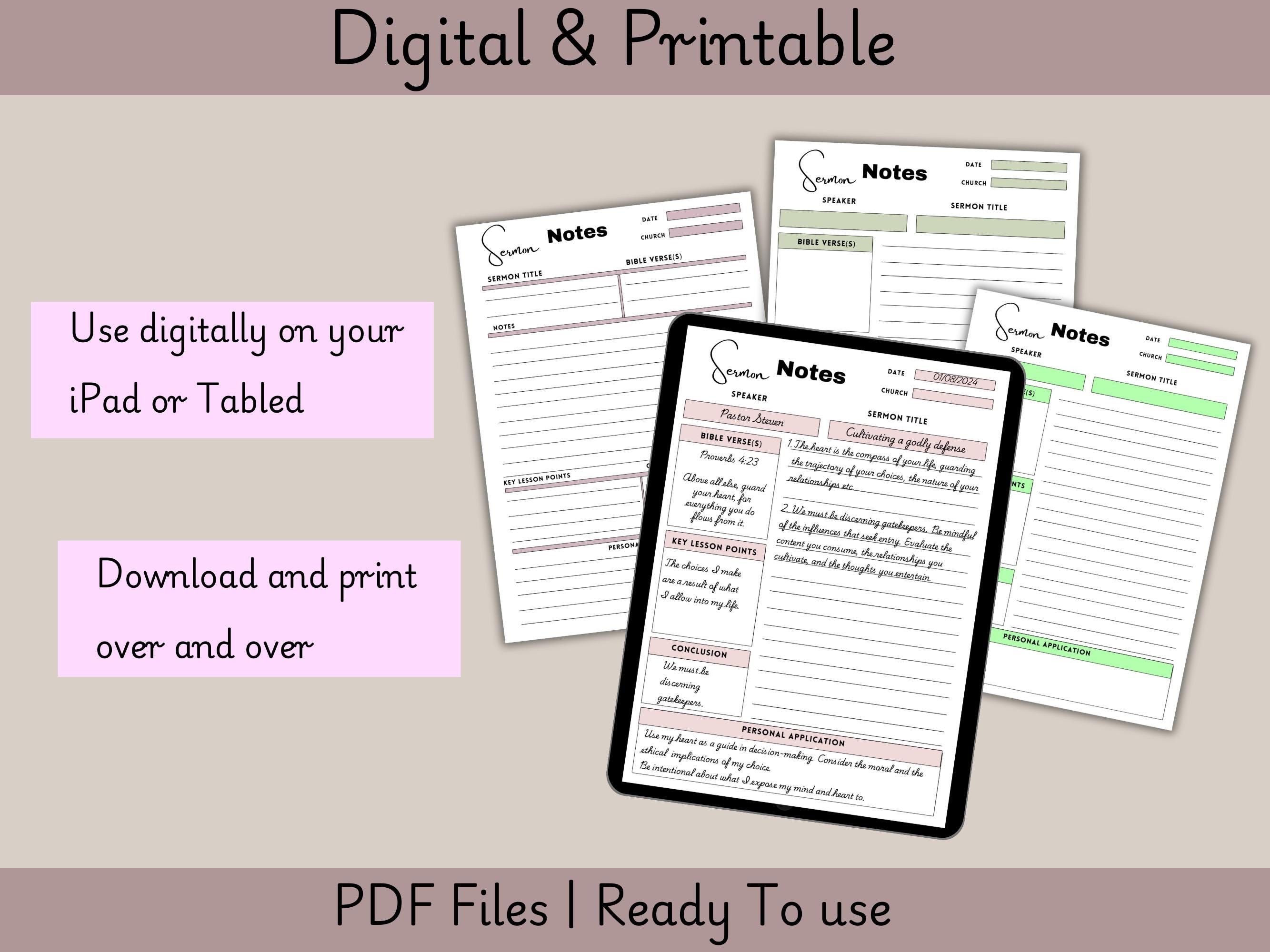 Printable Sermon Notes Template Digital Sermon Notes Journal Etsy