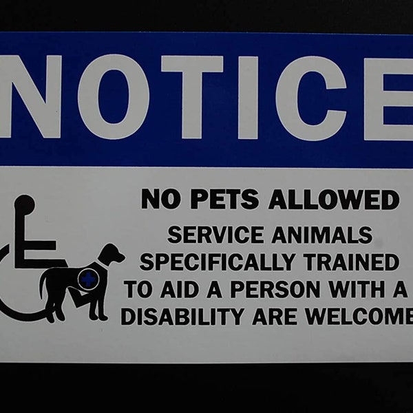 No Pets Allowed Trained Service Dogs Are Welcome Landscape Wall Sign