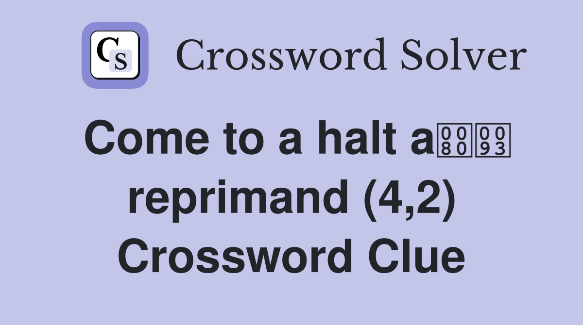 Come to a halt a reprimand (4 2) Crossword Clue Answers Crossword