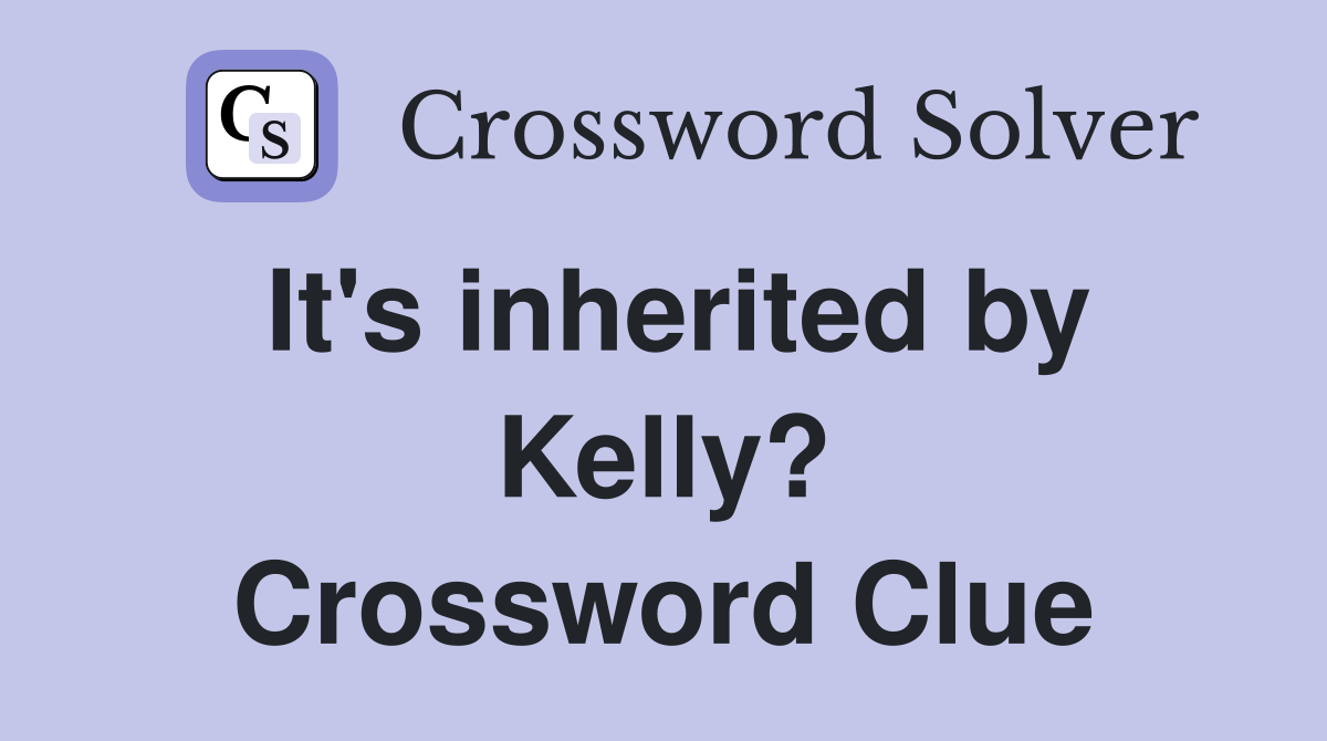 It #39 s inherited by Kelly? Crossword Clue Answers Crossword Solver
