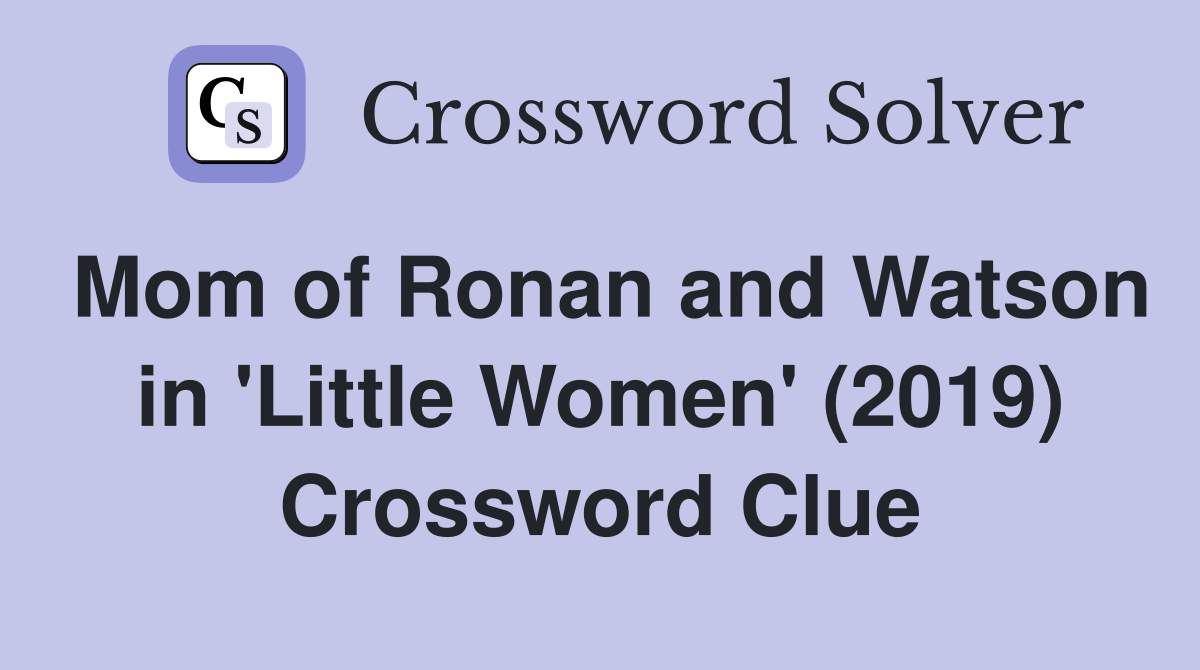 Mom of Ronan and Watson in #39 Little Women #39 (2019) Crossword Clue