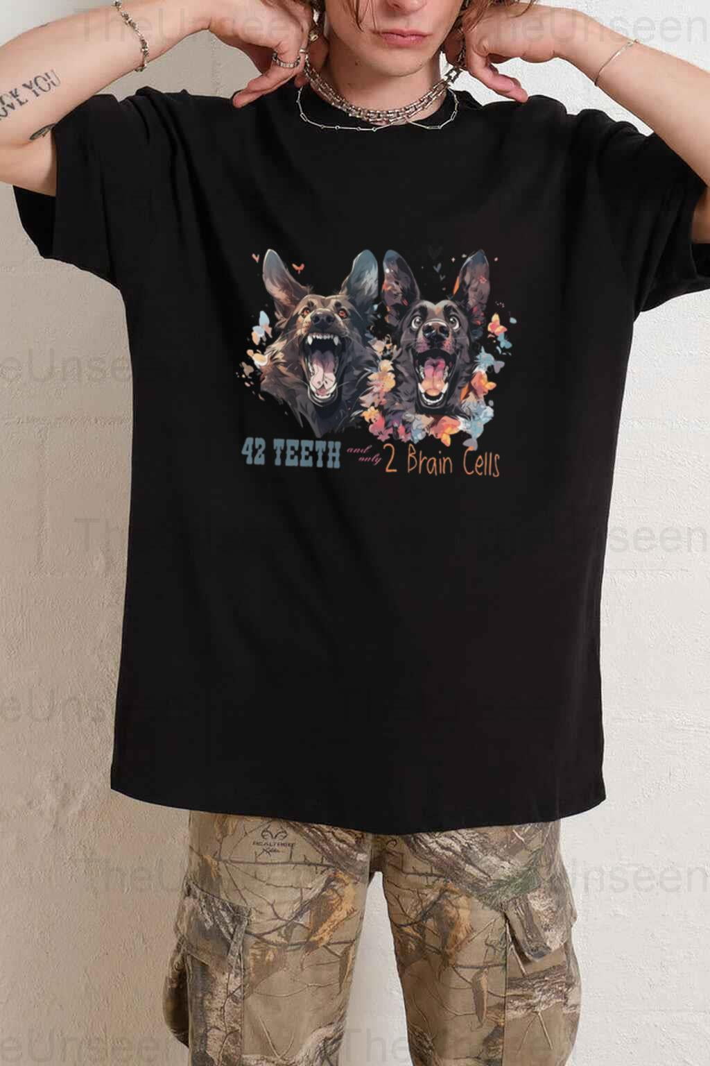 42 Teeth Two Brain Cells Funny Service Dog Humor Unisex T Shirt up to