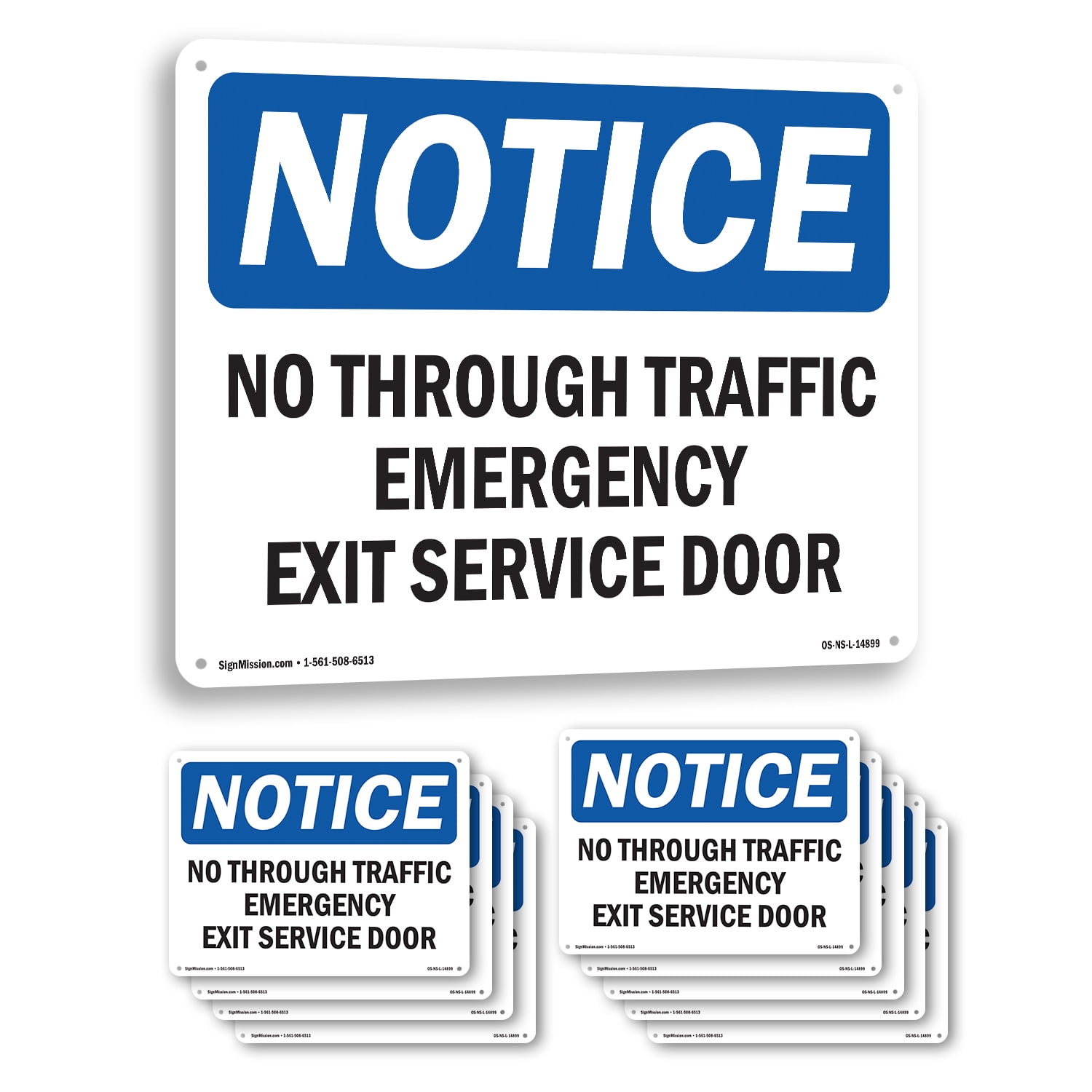 No Through Traffic Emergency Exit Service Door OSHA Notice Rigid