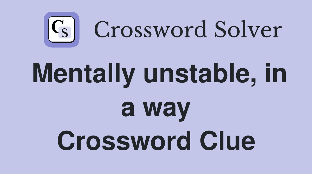 Mentally unstable in a way Crossword Clue Answers Crossword Solver